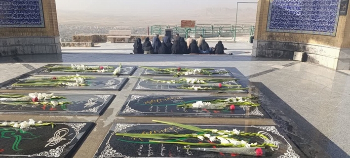 در فضای آکنده از عطر گل و اشک، غبارروبی و گل‌افشانی مزار شهدا انجام شد؛ آنگاه صدای زمزمه‌ی زیارت عاشورا توسط جناب اقای امیری دل‌ها را به کربلا برد و فاتحه‌ای از عمق جان، نثار روح بلند شهیدان شد.